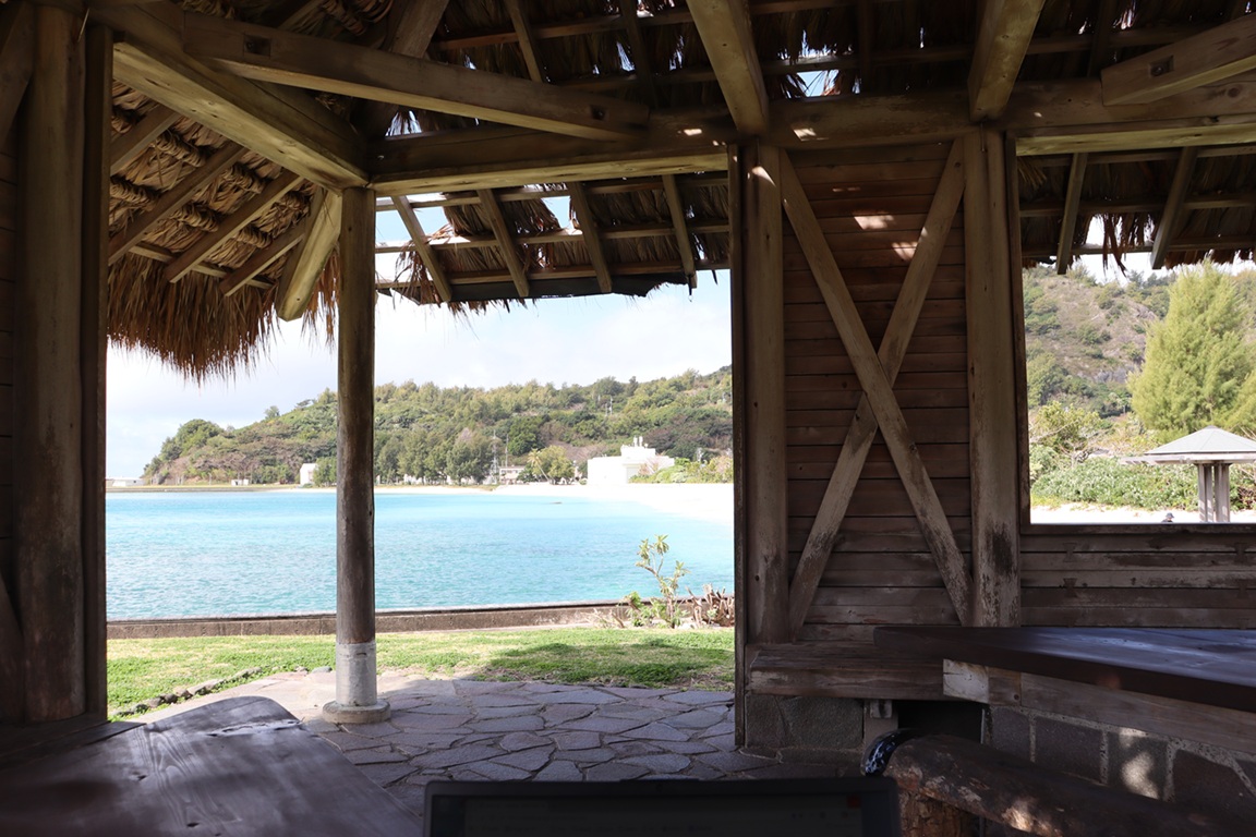 でも、景色が良くて作業ができる場所なら浜辺にいくらでも存在はする。