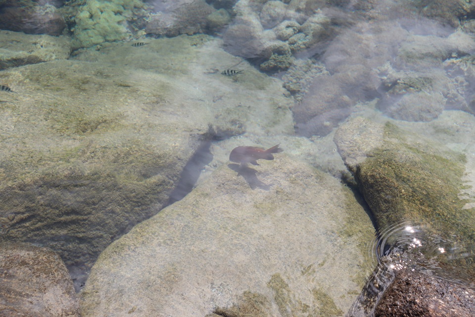 近づいても魚は全然逃げず、筆者も水の中の生物としてみなされているかのよう。