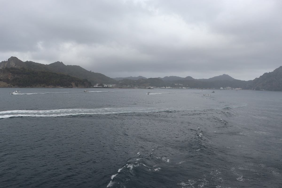見送りの船が何艘も小笠原丸を追いかけてくる。