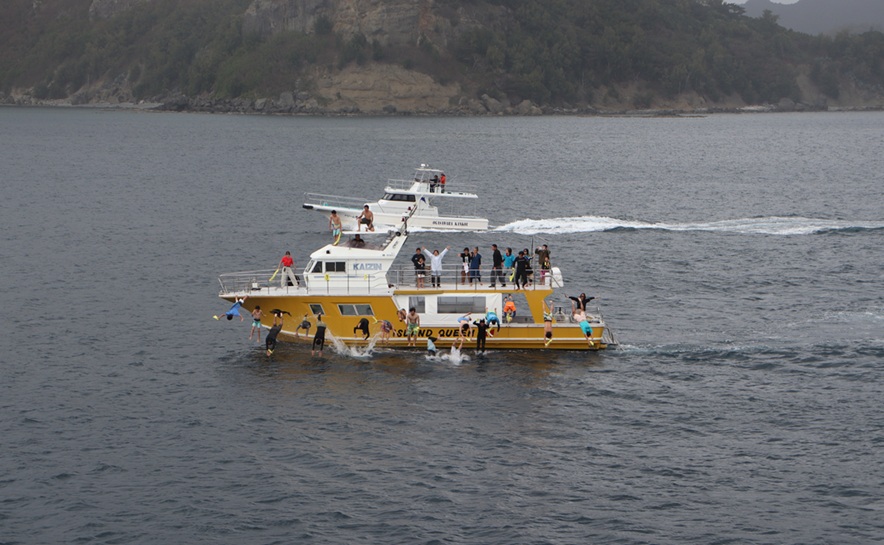 最後は飛込のパフォーマンス。だいぶ沖まで来てくれる船もいる。